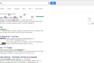 Zerg Rush - A playable game originally created by Google with small 'o' characters that destroy search results if they are not clicked with the mouse pointer.